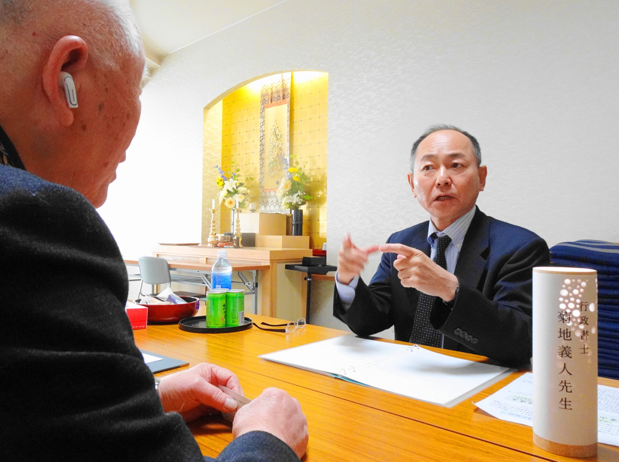 当日は行政書士 菊地先生のご協力をいただき、相続やお墓の承継、そして死後の手続きなどについて参拝の折にお話をうかがう場となりました。