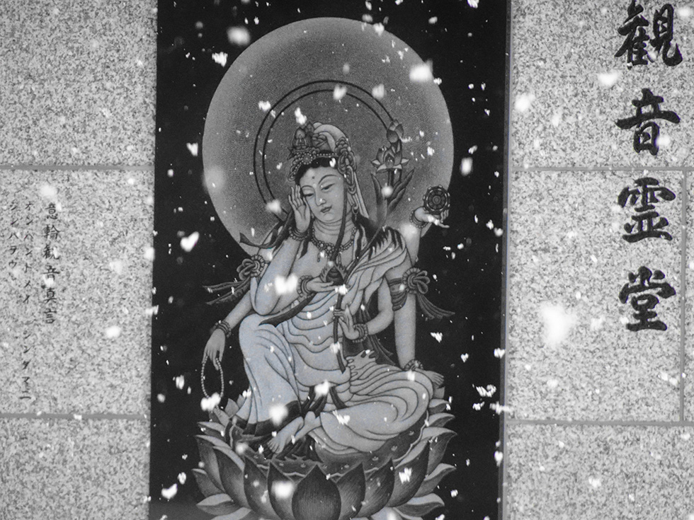 合祀供養の観音霊堂の御前では、納骨された霊位を見守り給う如意輪観音さまの御慈悲に深く額づき、供養のため静かに手を合わせる人々の姿が、彼岸供養の静かな気配となっておりました。