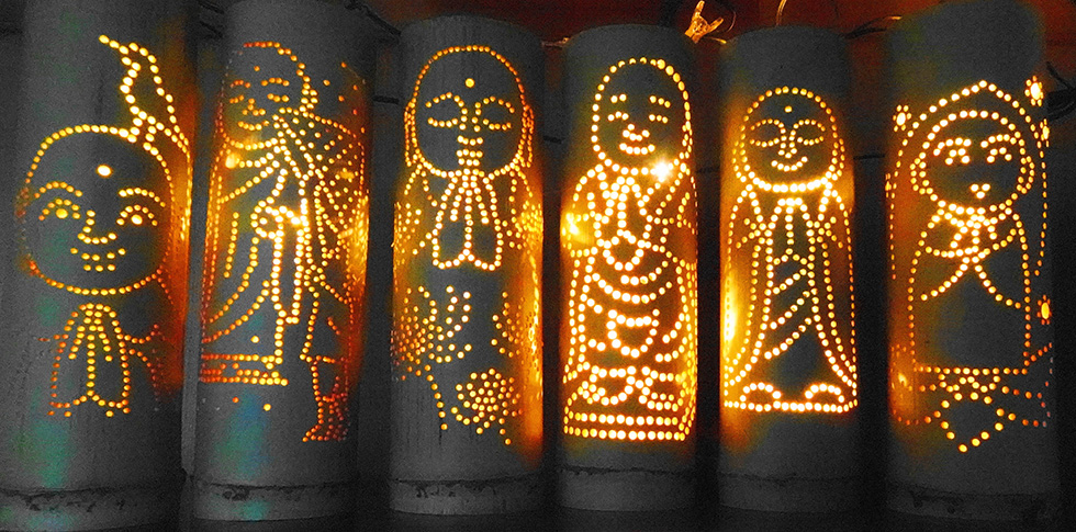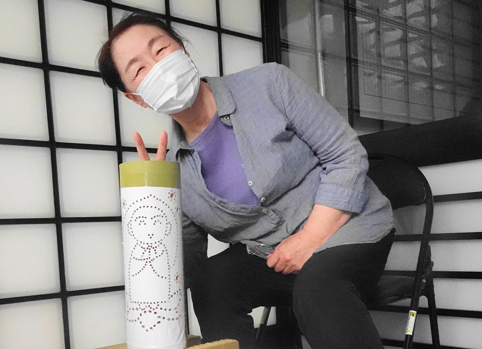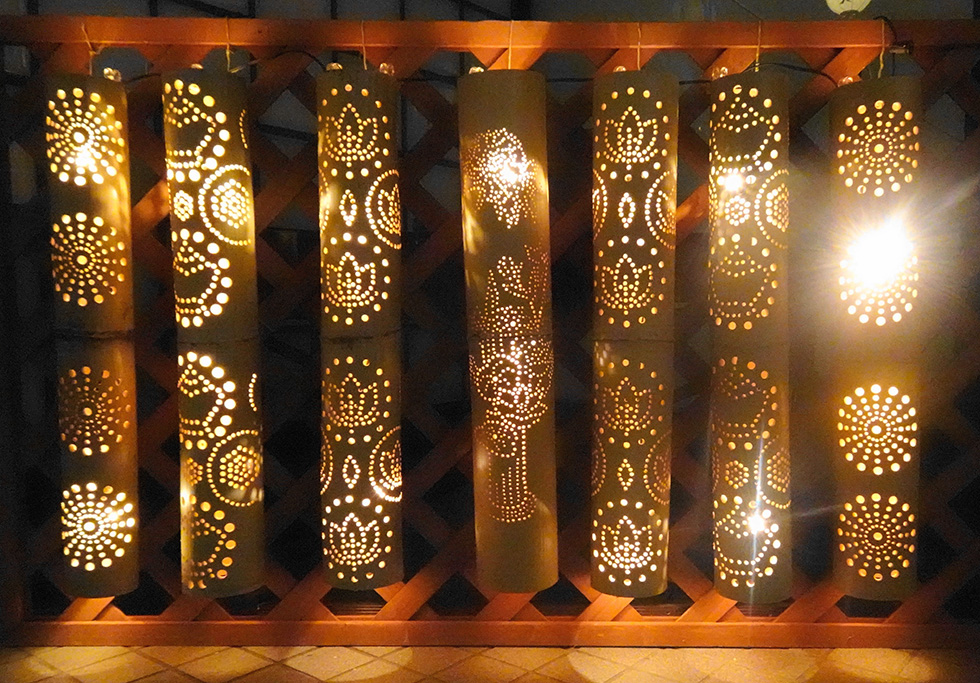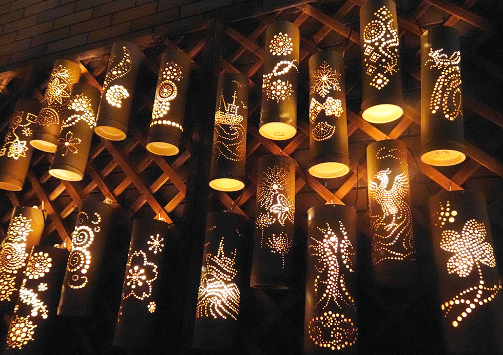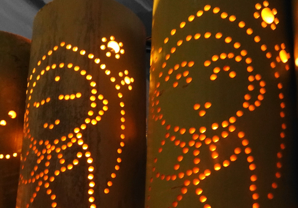 初挑戦の手には汗がにじみ、それでも手順に慣れてくると、表情には安堵の笑みが広がっていました。誰もが「自分の竹灯籠を仕上げたい」と願いながらの挑戦。 その夢中さのなかに、一つひとつの穴へ祈りを込めていく姿があります。 その姿に、祈りの原点が見えたようでした。