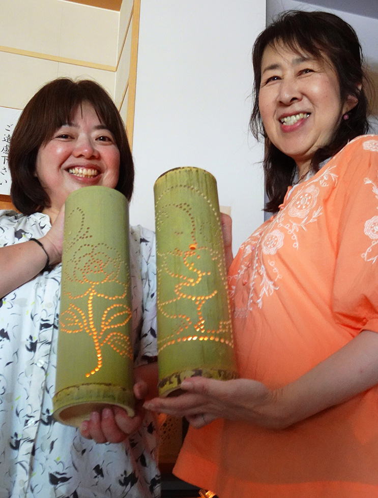 完成した竹灯籠を手にしたとき、誰もが少し誇らしげな笑顔を見せます。