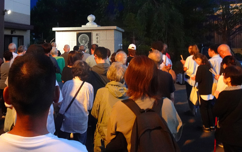 観音霊堂前にて、迎え火の供養が厳かにはじまります