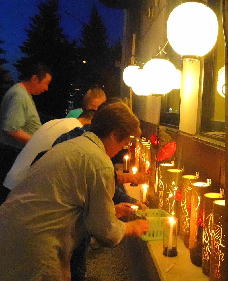 竹灯籠づくりは、迎え火のもう一つの祈りです。
