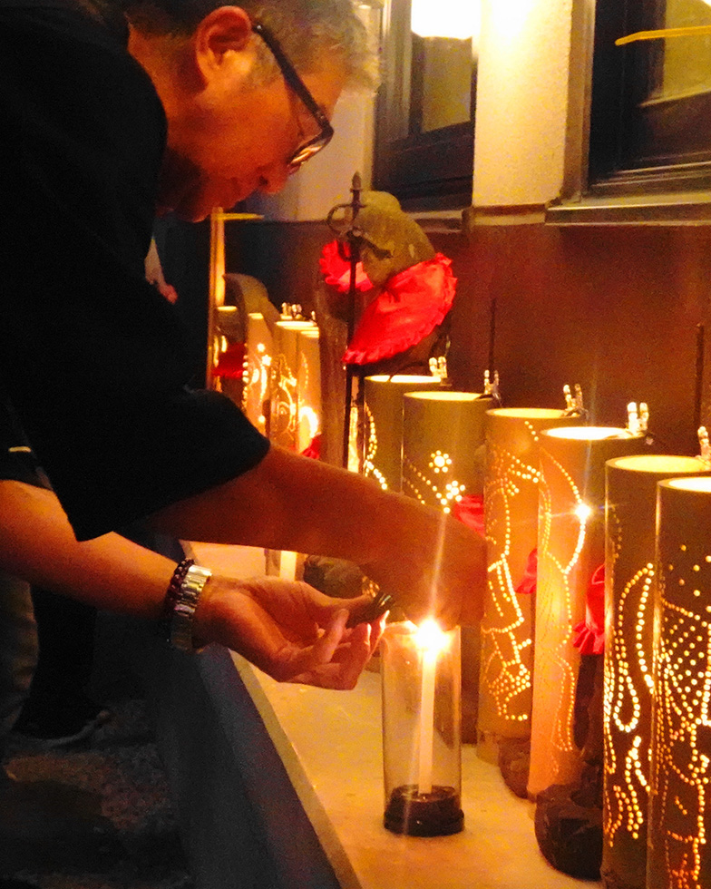 穴を開ける手、支える手、見つめる瞳。 そのすべてがひとつになって、祈りの光は生まれました。