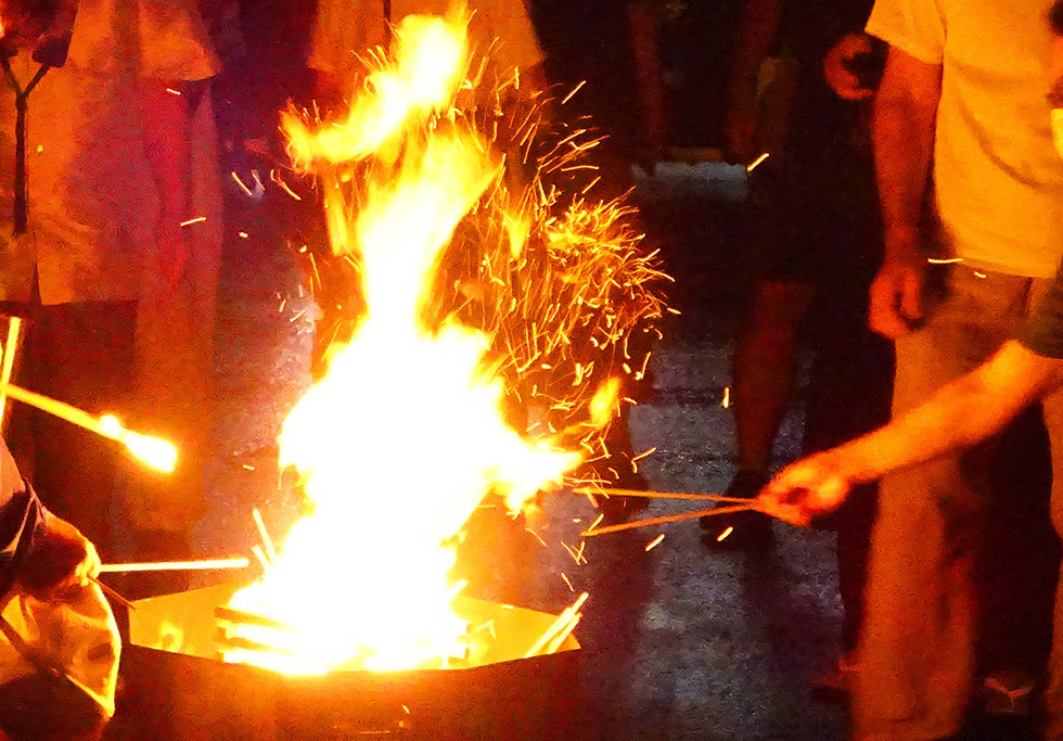 亡き人と今を生きる人を静かにひとつに繋げてゆきます。火花の瞬きは、あたかも祈りの声を代弁しているかのようです。